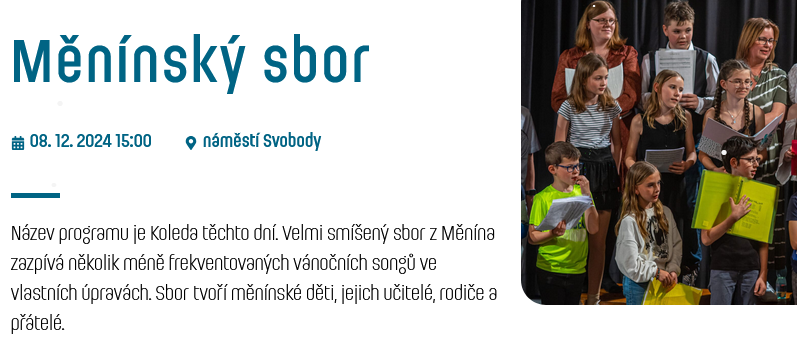 Titulní strana / Kalendář / Vánoční koncert Měnínského sboru na náměstí Svobody v rámci akce Brněnské Vánoce